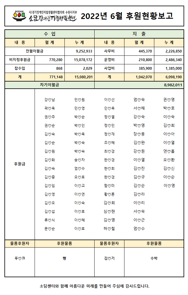 2022년 6월 후원현황 보고서 페이지 정보 작성자 소담센터 댓글 0건 조회 467회 작성일 22-07-06 10:24 본문 소중한 후원 감사합니다 목록 이전글2022년 7월 후원현황 보고서 22.08.03 다음글2022년 05월 후원현황 보고서 22.06.03 댓글목록 댓글목록 등록된 댓글이 없습니다.