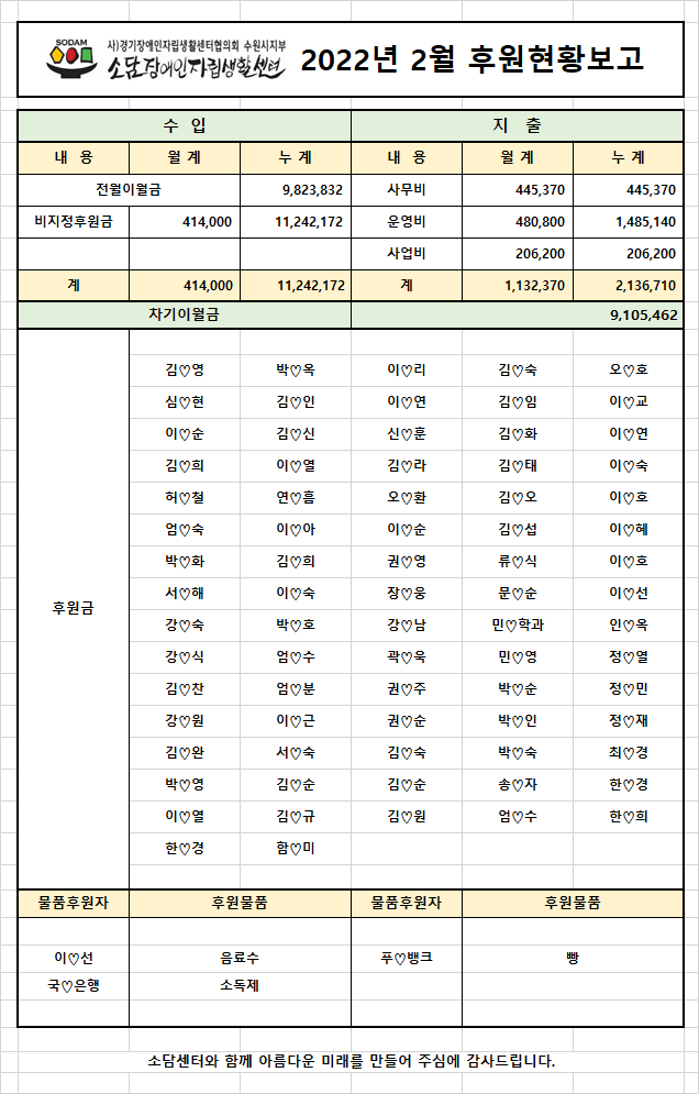 2022년 02월 후원현황 보고서 페이지 정보 작성자 소담센터 댓글 0건 조회 533회 작성일 22-03-04 12:00 본문 소중한 후원 감사합니다 목록 이전글2022년 03월 후원현황 보고서 22.04.06 다음글2022년 01월 후원현황보고서 22.03.02 댓글목록 댓글목록 등록된 댓글이 없습니다.