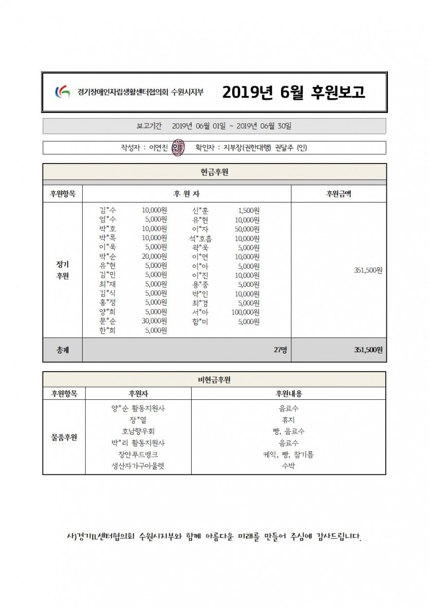 2019년 6월 후원보고 페이지 정보 작성자 최고관리자 댓글 0건 조회 859회 작성일 19-10-23 09:44 본문 후원주심에 진심으로 감사드립니다. 지역사회 안에서 열심히 활동하겠습니다. 목록 이전글2019년 7월 후원보고 19.10.23 다음글2019년 5월 후원보고 19.10.23 댓글목록 댓글목록 등록된 댓글이 없습니다.