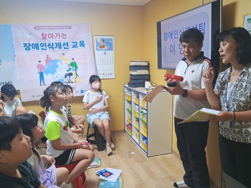 0820 찾아가는 장애인식개선교육 1, 2, 3, 4, 페이지 정보 작성자 소담센터 댓글 4건 조회 3,009회 작성일 24-08-21 11:12 본문 권리중심일자리 장애인식개선강사팀의 첫 강연을 그레이스 지역아동센터 학생들과 함께 했습니다. 목록 이전글0820 찾아가는 장애인권 북 콘서트 24.08.21 다음글지역장애인과 함께 하는 장애친화 체력인증입니다. 24.08.13 댓글목록 댓글목록 김기태님의 댓글 김기태 작성일 24-08-22 20:37 아동센터 가서 장애인식개선 강사교육을 발표하고 나선다^^ 답변 삭제 아동센터 가서 장애인식개선 강사교육을 발표하고 나선다^^ 정석민님의 댓글 정석민 작성일 24-09-03 16:08 장애인식개선교육 강사로 나가서 해보니까 실감나지 않았습니다~ 답변 삭제 장애인식개선교육 강사로 나가서 해보니까 실감나지 않았습니다~ 김기태님의 댓글 김기태 작성일 24-09-24 19:11 장애인식개선 강사로 용기내서 하겠습니다 ^^ 답변 삭제 장애인식개선 강사로 용기내서 하겠습니다 ^^ 조혜진님의 댓글 조혜진 작성일 24-09-24 20:27 어린이.아이들에게 강의?! 하실때 많이 긴장하셨을거 같은데 차분히 강의하시고. 퀴즈 맞힐때 선물해주신것도 아이들이 재밌어하고 아이들이 정답을 맞혔다고하셔서 조금 놀랐지만 신기했습니다. 역시 소담센터 선생님들 ㅎㅎ 멋지십니다 수고하셨습니다!!!!*^^* 답변 삭제 어린이.아이들에게 강의?! 하실때 많이 긴장하셨을거 같은데 차분히 강의하시고. 퀴즈 맞힐때 선물해주신것도 아이들이 재밌어하고 아이들이 정답을 맞혔다고하셔서 조금 놀랐지만 신기했습니다. 역시 소담센터 선생님들 ㅎㅎ 멋지십니다 수고하셨습니다!!!!*^^*