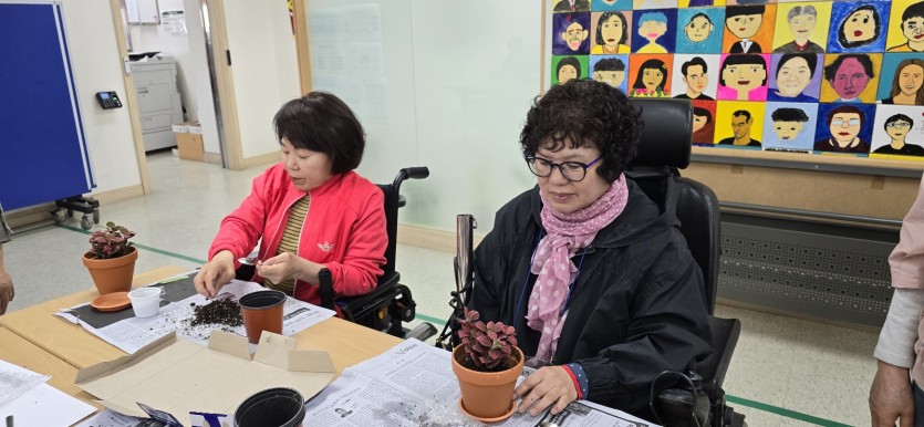 아침향기 조명호 원장님의 후원과 재능기부로 이루어진 봄의 전령 핑크스타 화분 만들기 시간~