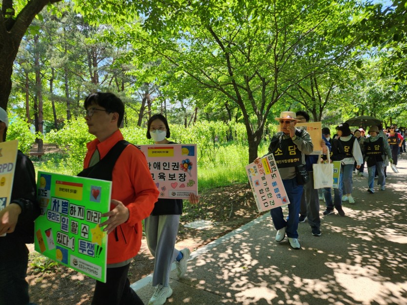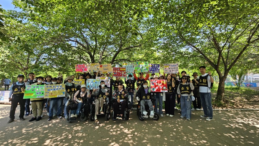 야외에서의 활동을 나들이처럼 즐거워하며 소담센터와 권리중심일자리를 알리는 홍보용 조끼를 입고 만석공원 전체를 다함께 행진하며 만나는 시민들에게 인사하고 소담센터와 권리중심일자리를 알리는 자리를 가져보았네요.