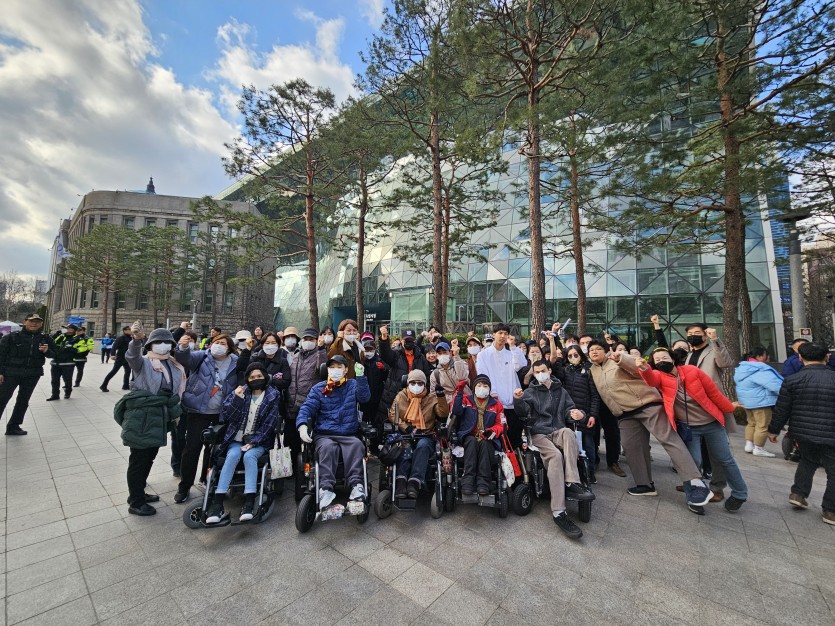 서울역 4번 출구에서 서울시청 까지 장애인도 시민으로 이동하는 시대로 DP 행진 하며