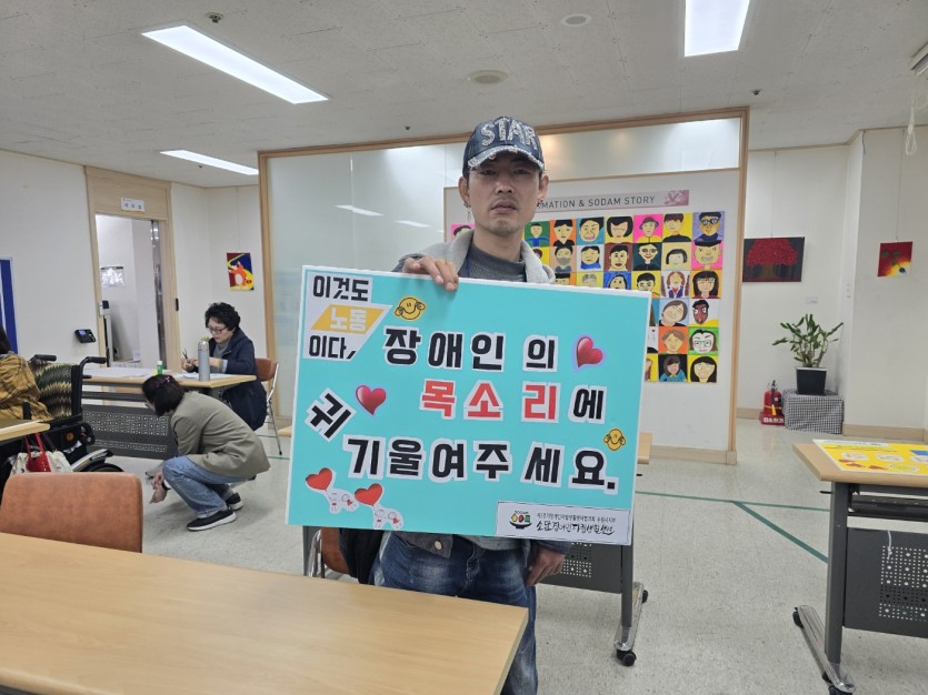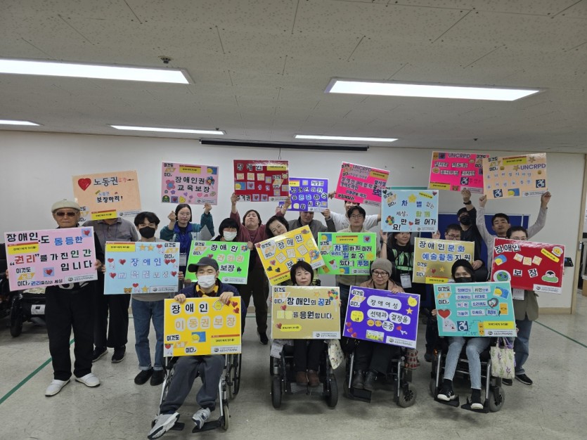 장애인의 권익웅호를 위해 필요한 내용을 피켓에 담아 앞으로도 꾸준히 캠페인을 하며 장애인의 권리와 존엄성을 존중하는 사회를 만들어 가요~^^