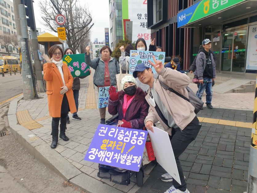 0312 권리중심일자리 스타필드 캠페인 페이지 정보 작성자 소담센터 댓글 1건 조회 1,047회 작성일 24-03-12 15:24 본문 자조모임 서로도와 3월 월례회 모임후 소담센터로 행진하며 캠페인했습니다. 목록 이전글2024년 3월 집단동료상담 심화과정 24.03.13 다음글0304 수원시 장안공원 플로킹 데이~^^ 24.03.11 댓글목록 댓글목록 김정심님의 댓글 김정심 작성일 24-03-18 23:18 우리의 이동권 권리을 찾자 답변 삭제 우리의 이동권 권리을 찾자