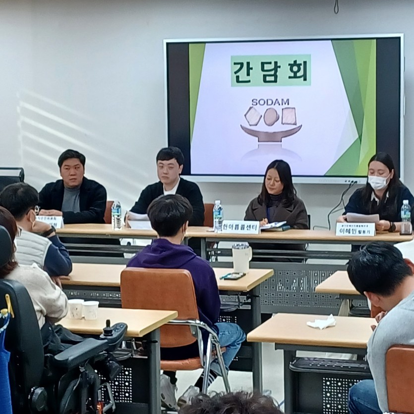 한아름콜센터와 수원시 의회 복지위원회 이대선의원님께서 참석해주시어 수원시 이동권 방안 마련 간담회를 하게 되었습니다. 수원시에 이동권을 위한 권리 예산을 늘려 이용자들이 기다리는 시간을 최대한 줄이고 정당한 편의 시설을 제공받을 수 있는 방안을 모색하는 자리게 되었습니다. 앞으로도 우리의 열띤 토론의 목소리로 지역 장애인들이 빠르고 편리하게 이동할 수 있는 그 날이 될때까지 투쟁~