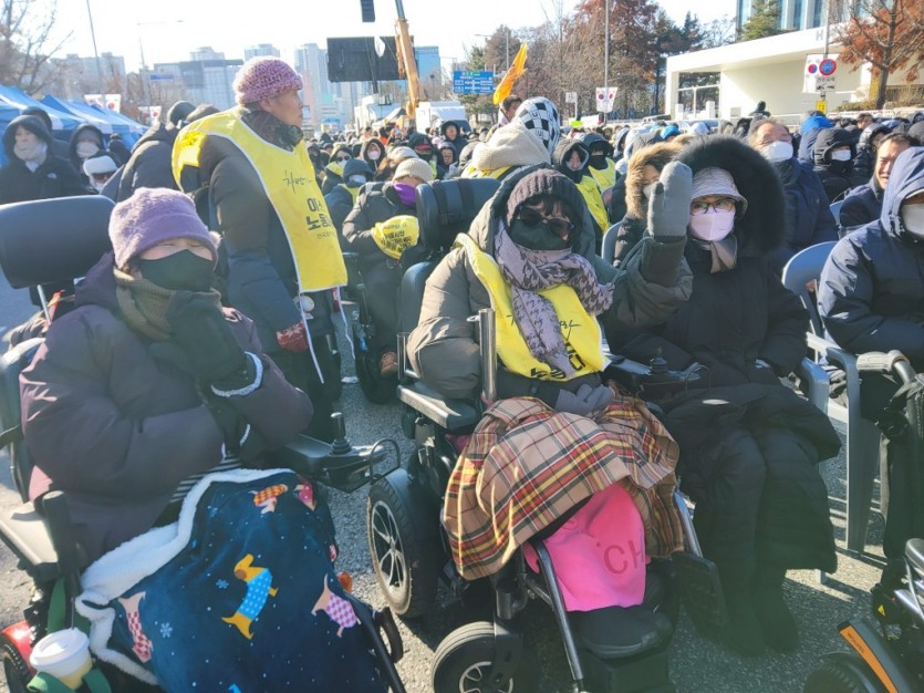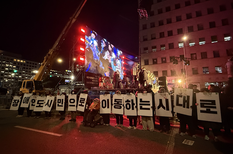 2024년 12월 4일, 계엄 선포 다음 날 더불어민주당 이재명 당시 대표는 전장연의 장애인 권리 요구에 “마이크로 할 얘기를 하고 그다음에 조용히 하세요”라고 말하며 발언을 넘겼다. 장애인 권리 입법을 당론으로 채택해 달라는 절박한 요청에도 아무런 답을 내놓지 않았다. 이후 정권이 교체된 뒤에도 장관, 당 대표, 국무총리를 찾아가 요구했지만 장애인권리에 대한 명확한 확답은 끝내 누구에게서도 들을 수 없었다. 지연된 권리는 권리가 아니라는 사실을, 2026년 국회 예산안 통과 과정에서 우리는 다시 확인했다.