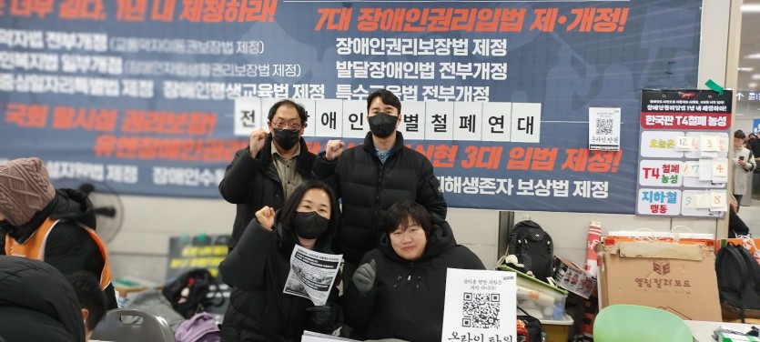 소담센터 활동가 4인은 국회의사당역 T철폐 농성장 12월 3일~4일 주야간사수 진행을 함. 세계장애인의 날을 맞이하여 전국단위에 많은 센터에서 국회의사당역으로 참여하였음. 영하의 날씨속에서도 장애인의 권리를 외치며 우리의 목소리를 높였음. 25년도에도 다가오는 26년에도 아직도 권리는 보장을 받지 못하였고 앞으로도 권리를 찾기란 쉽지 않아보이는 안타깝고 답답한 현실이다. 그래도 우리는 다양한 방법들을 모색하여 장애인도 지역사회에서 함께 할 수 있는 장애인의 권리를 찾고자 많은 연대에 참여하여, 시민들과 정부에 우리의 목소리를 더욱 더 높일 필요가 있다.