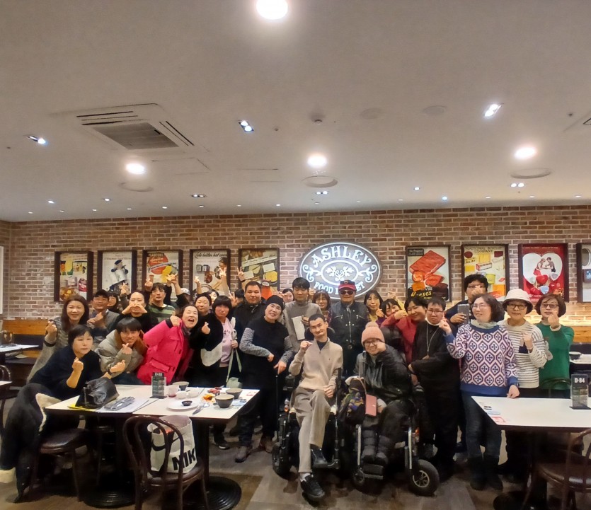 1218 2025 권리중심 일자리 평가회의 페이지 정보 작성자 소담센터 댓글 3건 조회 362회 작성일 25-12-18 17:41 본문 2025년 한 해동안 정말 수고 맣이 하셨습니다. 내년에도 이어지는 권리중심 일자리가 지속가능한 일자리가 될 수 있도록 연대로 함께 하겠습니다. 목록 이전글1218 수원시립미술관 관람 25.12.18 다음글1212 지역 장애인들과 함께하는 소래포구 일정 25.12.18 댓글목록 댓글목록 김기태님의 댓글 김기태 작성일 25-12-18 18:12 올해는 마지막으로 회식 했다. 그리고 맛있는거 많이 먹었다. 소장님 랑 국장님 랑 은란쌤 랑 성옥 선생님 같이 먹었다 선물 주고 마지막으로 단체 사진 찍어다. 답변 삭제 올해는 마지막으로 회식 했다. 그리고 맛있는거 많이 먹었다. 소장님 랑 국장님 랑 은란쌤 랑 성옥 선생님 같이 먹었다 선물 주고 마지막으로 단체 사진 찍어다. 정석민님의 댓글 정석민 작성일 25-12-20 15:10 애슐리 식당에서 회식을 했습니다 맛있는 것도 많이 먹었고 장갑 선물도 받고 기뻤어요~ 답변 삭제 애슐리 식당에서 회식을 했습니다 맛있는 것도 많이 먹었고 장갑 선물도 받고 기뻤어요~ 나수영님의 댓글 나수영 작성일 25-12-22 11:05 애슐리 식당에서 회식을 했습니다 소장님 국장님 은란선생님 성옥선생님이랑 같이 맛있게 먹었습니다 선물을 받았고 단체사진도 찍었습니다 답변 삭제 애슐리 식당에서 회식을 했습니다 소장님 국장님 은란선생님 성옥선생님이랑 같이 맛있게 먹었습니다 선물을 받았고 단체사진도 찍었습니다