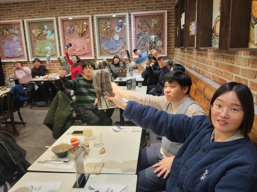 나수영님의 댓글 나수영 작성일 25-12-22 11:05 애슐리 식당에서 회식을 했습니다 소장님 국장님 은란선생님 성옥선생님이랑 같이 맛있게 먹었습니다 선물을 받았고 단체사진도 찍었습니다 답변 삭제 애슐리 식당에서 회식을 했습니다 소장님 국장님 은란선생님 성옥선생님이랑 같이 맛있게 먹었습니다 선물을 받았고 단체사진도 찍었습니다