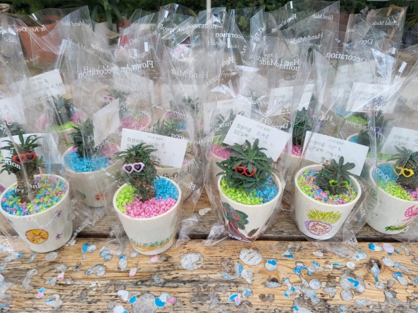 - 지역에 위치한 실내 체험장에서 괴마옥 화분을 만들어 보았습니다.