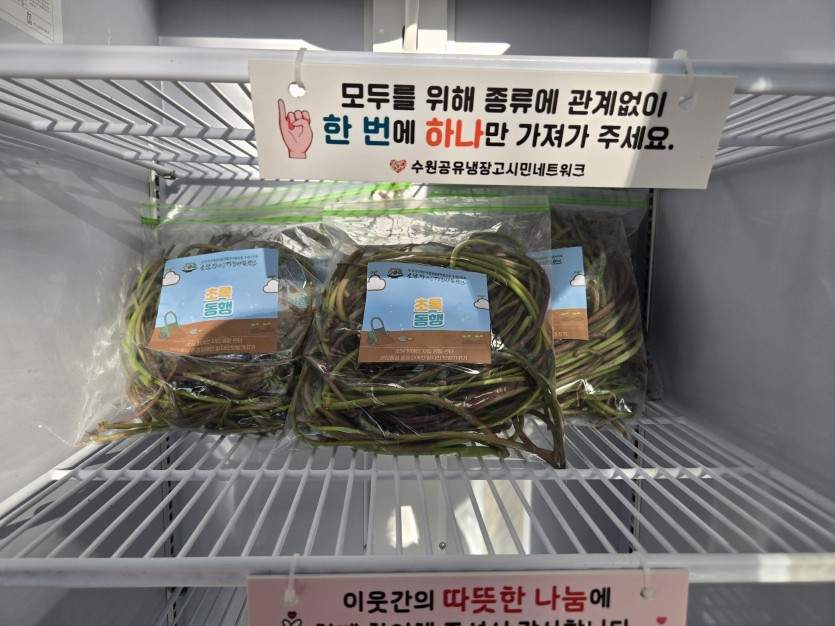 건강한 허브솔트를 만들고 고구마줄기를 탑동에 위치한 공유냉장고 안에 기부했습니다.