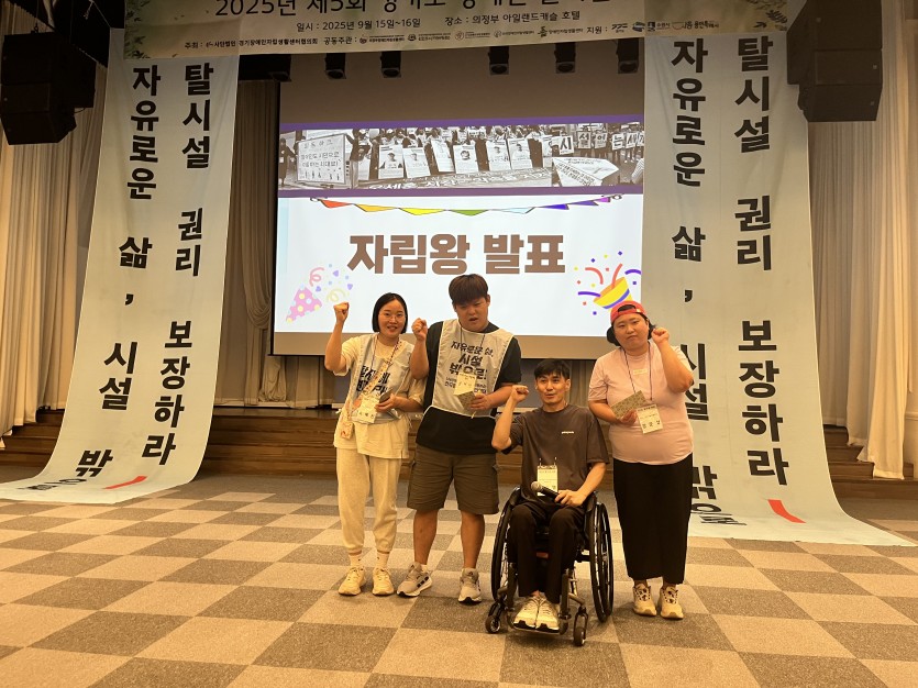소담센터에서 참가한 지역장애인 모두 열성적이고 적극적인 모습으로 탈시설대회에 임하였고 그결과 조**님께서 자립왕에 선정되는 기쁨도 누렸음.