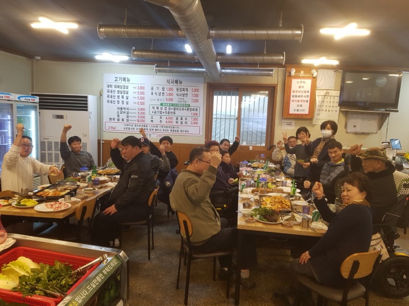 훈련 뒤 선수들 좋은성적 거두라고 격려하는 즐거운 회식~