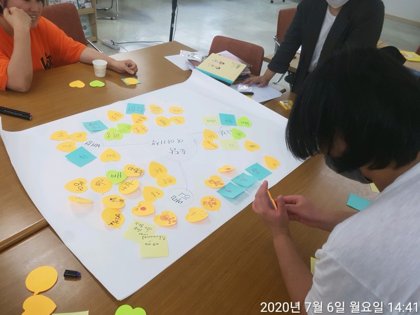 첫시간으로 각자가 정한 단어로 스토리 텔링을 하며 책작업에 있어 분담하고자 자신이 잘하는 파트를 정했습니다.