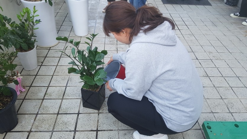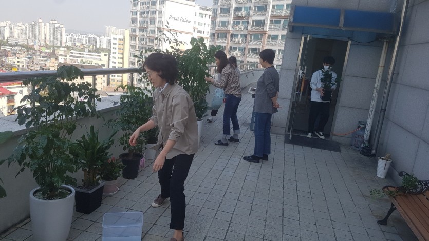 축하해주러 오신분들 정성이 가득담긴 소중한 화분인지라 소홀히 대할수 없어 가지치기와 곁들여 사무국식구들이 정성을 들이고 있습니다.