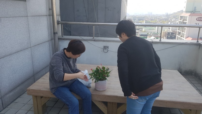 센터 개소식할때 받은 화분들이 햇빛을 못받아서인지 요즘 시들시들해 진것 같습니다.