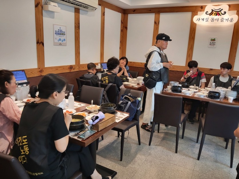 무더위를 맞이하여 권리중심 노동자들의 여름철 건강을 위햐여 백세삼께탕 조원점에서 삼계탕을 먹고 지역사회 캠페인을 진행했습니다.