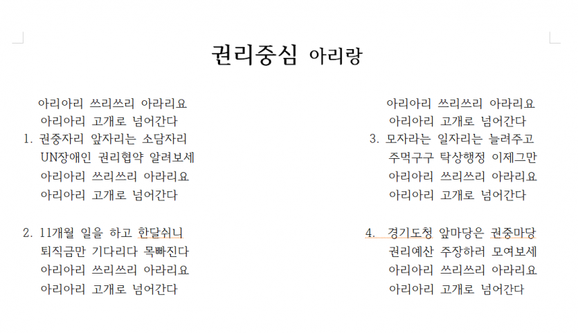 우리들의 권리를 노래와 몸짓으로 표현하는 문화예술 직무입니다. 함께해요