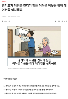 0303 경기도가 더위를 견디기 힘든 어려운 이웃을 위해 에어컨을 설치해요.^^ 페이지 정보 작성자 소담센터 댓글 1건 조회 90회 작성일 26-03-03 11:06 본문 관심있는 지역 장애인들의 많은 관심 부탁드립니다. 목록 이전글0306 KNN 다큐 영화 <나무의 노래> 첫 공개 26.03.05 다음글0302 차별그만해 (21년 외쳤다) - 평화의 나무 합창단 개사 박경석 26.03.03 댓글목록 댓글목록 김기태님의 댓글 김기태 작성일 26-03-05 08:22 어려운 이웃 위해서 에어컨 설치 해주세요 투쟁 답변 삭제 어려운 이웃 위해서 에어컨 설치 해주세요 투쟁