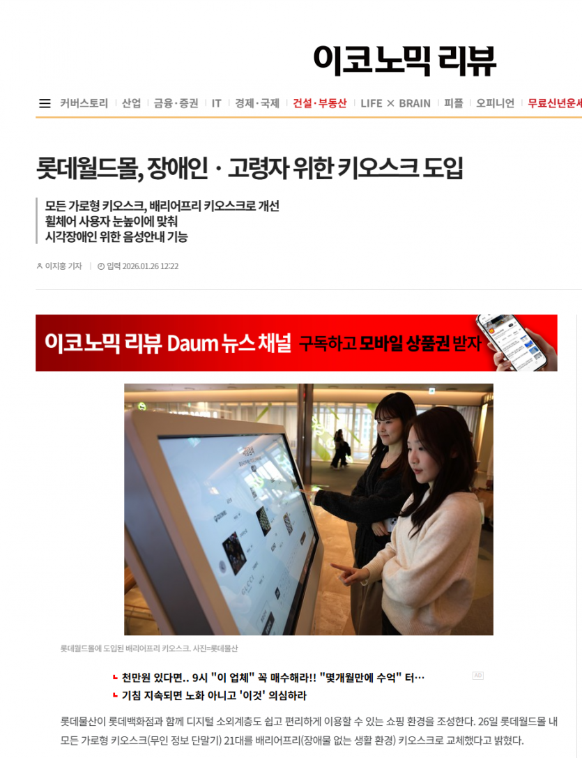 0308 롯데월드몰, 장애인ㆍ고령자 위한 키오스크 도입 페이지 정보 작성자 소담센터 댓글 0건 조회 65회 작성일 26-03-08 22:48 본문 https://www.econovill.com/news/articleView.html?idxno=727038 목록 이전글0312 [탈시설장애인당當 당當원을 찾아서] 당신은 몰랐을 당원의 삶 - ① 나는 K- 장녀입니다. 26.03.13 다음글0308 정태수 열사의 삶과 정신을 담은 책 『정태수 평전』이 나왔습니다. 많은 동지가 함께 읽으면 좋겠습니다. 26.03.08 댓글목록 댓글목록 등록된 댓글이 없습니다.