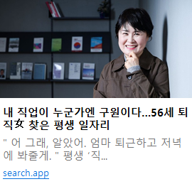 0305 내 직업이 누군가엔 구원이다…56세 퇴직女 찾은 평생 일자리 페이지 정보 작성자 소담센터 댓글 0건 조회 17회 작성일 26-03-05 09:08 본문 https://v.daum.net/v/20260227050235786 ~ 멋진 인생을 꿈꾸는 모든 분들에게 이 글을 전달드립니다. 목록 이전글0306 { 인간극장} 지체장애 1급, 두 아들을 혼자 키우는 싱글대디의 감동적인 육아일기 | KBS 인간극장 - 나의 태양, 나의 우주 140317-140321 방송 26.03.05 다음글0305 뇌성마비 딛고 약대 합격…장애 청년과 '의사 이상의 스승' 26.03.05 댓글목록 댓글목록 등록된 댓글이 없습니다.
