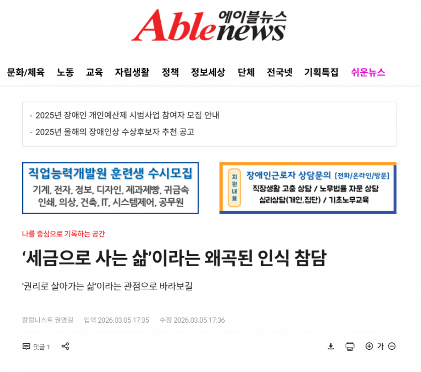 0306 '세금으로 사는 삶’이라는 왜곡된 인식 참담 - 에이블 뉴스