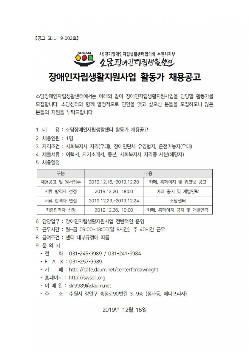 작성자 소담센터 댓글 0건 조회 1,754회 작성일 19-12-16 08:09본문