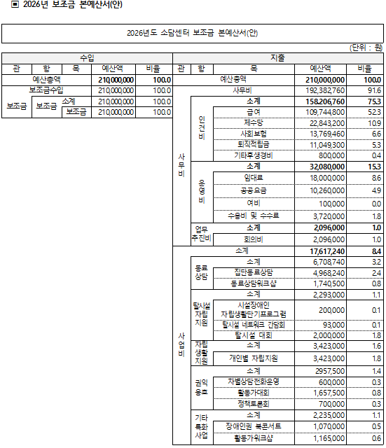사)경기장애인자립생활센터협의회 수원시지부 IL 2026 (가)예산서 공고 페이지 정보 작성자 소담센터 댓글 0건 조회 61회 작성일 25-12-23 13:29 본문 사)경기장애인자립생활센터협의회 수원시지부 IL 2026 (가)예산서를 첨부와 같이 공고합니다. 목록 이전글사)경기장애인자립생활센터협의회 수원시지부 체험홈 2026 (가)예산서 공고 25.12.23 다음글2026 지부장 후보자 모집공고 26.01.22 댓글목록 댓글목록 등록된 댓글이 없습니다.