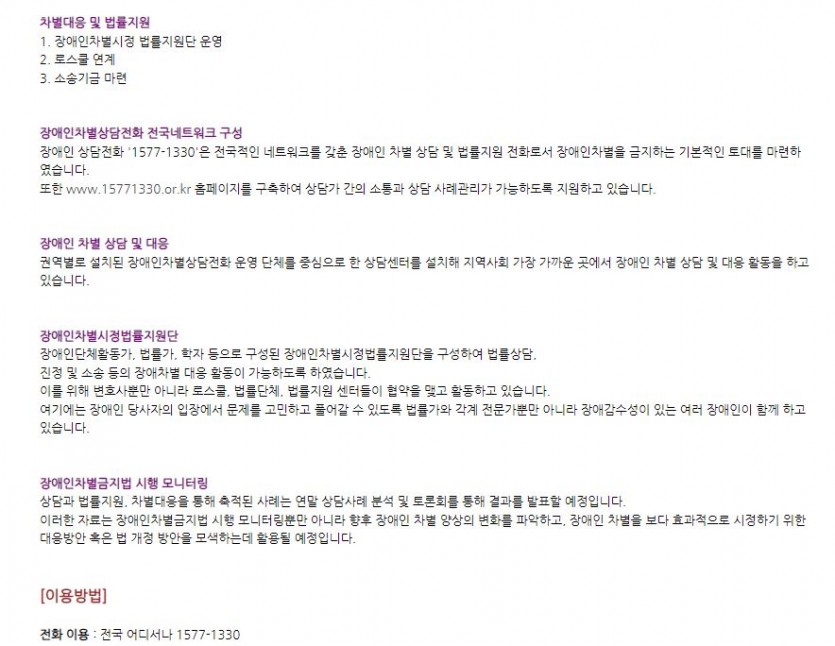○ 사 업 명 : 장애인차별상담전화 1577-1330