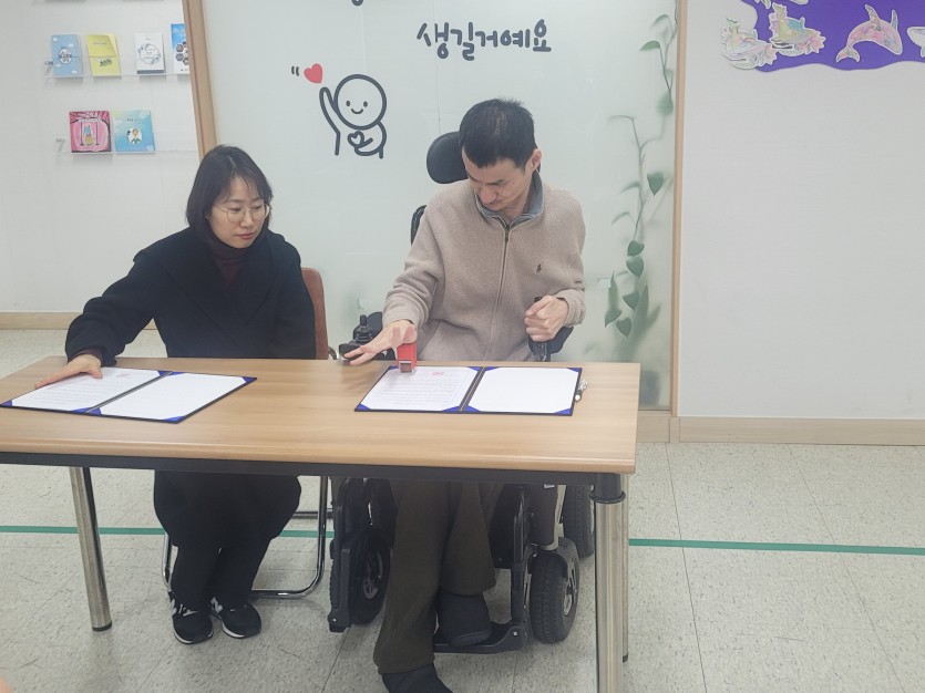 장애인의 지역사회 자립을 위해 양 기관의 자원을 공유하기로 협약함.