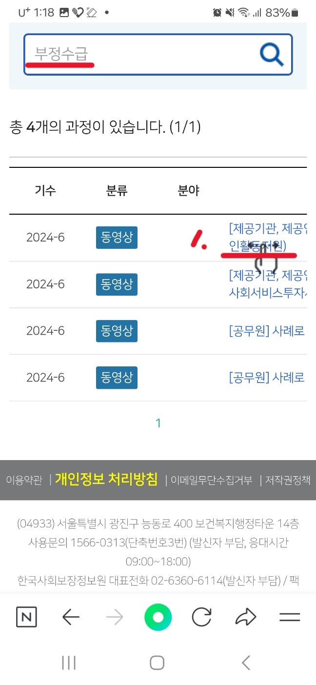 * 수강 인터넷주소 (한국사회보장정보원 교육홈페이지)