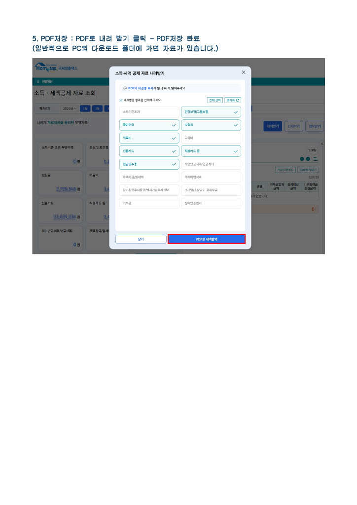 ⓑ 연말정산 간소화 사이트에서 소득ㆍ세액공제 자료를 PDF파일로 다운로드하여 제출