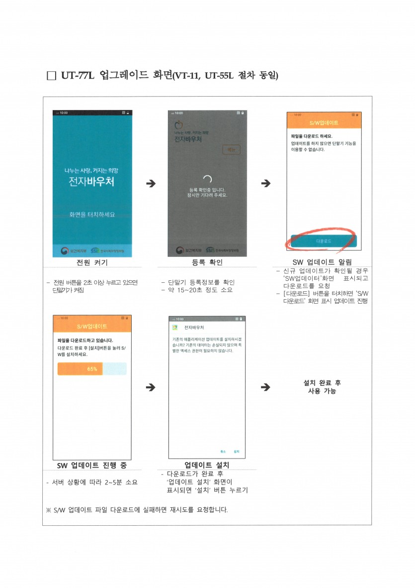 * 단말기 업그레이드 방법은 홈페이지 공지사항 참조