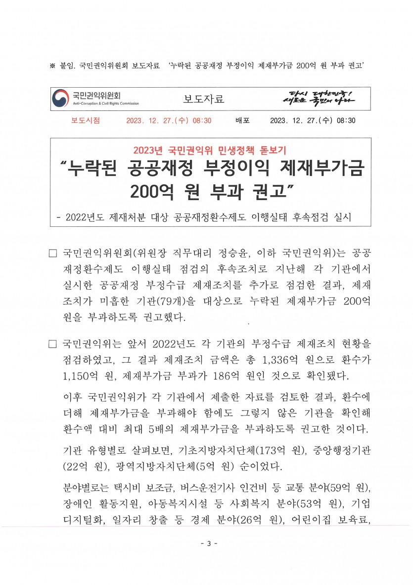 [중요]부정수급에 대한 행정 보도자료 및 안내
