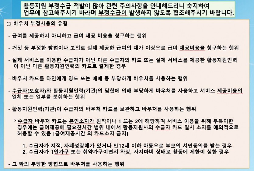 부정수급방지_바우처 부정사용의 사례 페이지 정보 작성자 소담센터 댓글 6건 조회 1,397회 작성일 23-04-27 11:46 본문 푸르름이 짙어지는 싱그러운 5월이랍니다~^^ 행복 가득한 한달 되시길 바랍니다~♬ 목록 이전글2023년 5월 활동지원사 월례교육 23.05.25 다음글2023년 4월 활동지원사 월례교육 23.04.24 댓글목록 댓글목록 정정희님의 댓글 정정희 작성일 23-05-30 12:36 확인했읍니다 답변 삭제 확인했읍니다 주영신님의 댓글 주영신 작성일 23-05-31 20:45 확인 답변 삭제 확인 안정화님의 댓글 안정화 작성일 24-03-05 11:40 확인. 답변 삭제 확인. 이순주님의 댓글 이순주 작성일 24-06-03 20:39 확인완료 답변 삭제 확인완료 문용서님의 댓글 문용서 작성일 24-07-12 21:47 확인 하였습니다 답변 삭제 확인 하였습니다 김봉화님의 댓글 김봉화 작성일 24-07-31 11:03 확인햇습ㄴ다. 답변 삭제 확인햇습ㄴ다.