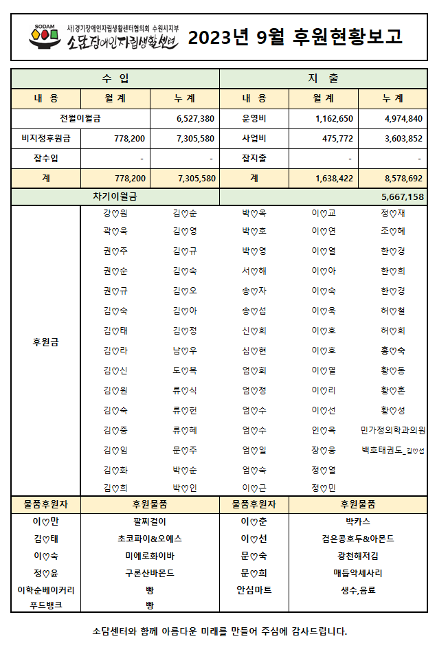 2023년 9월 후원현황보고서 페이지 정보 작성자 소담센터 댓글 0건 조회 364회 작성일 23-10-24 15:47 본문 소중한 후원 감사드립니다. (_ _) 목록 이전글2023년 10월 후원현황보고서 23.11.28 다음글2023년 8월 후원현황보고서 23.10.05 댓글목록 댓글목록 등록된 댓글이 없습니다.