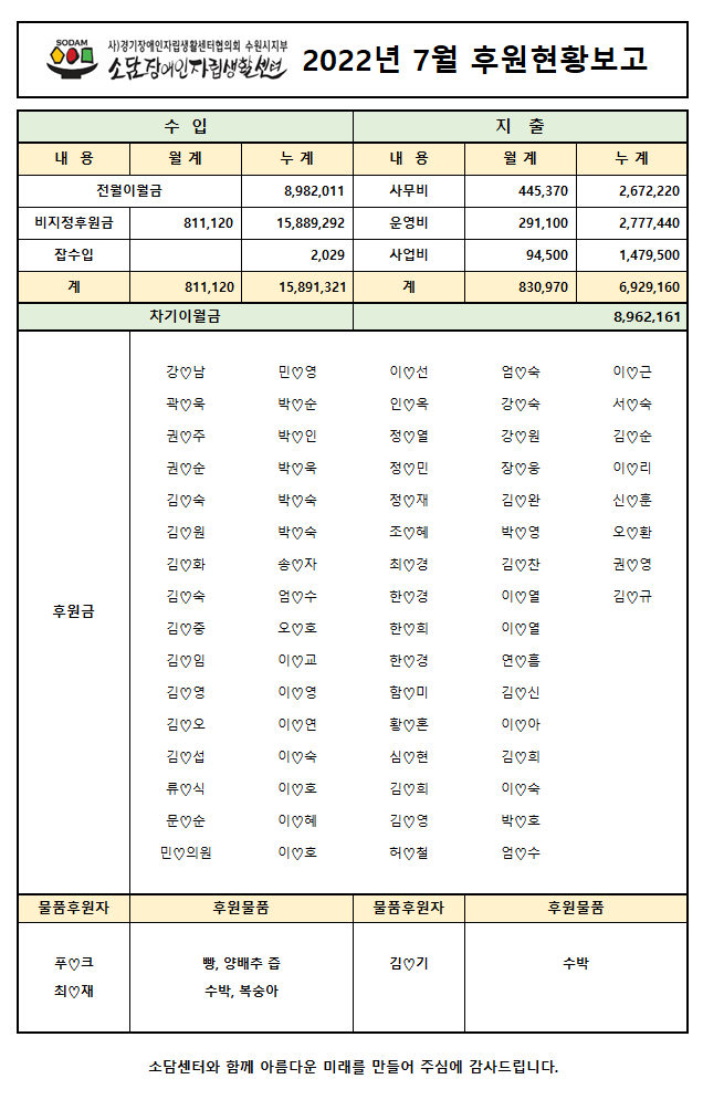 2022년 7월 후원현황 보고서 페이지 정보 작성자 소담센터 댓글 0건 조회 444회 작성일 22-08-03 11:32 본문 소중한후원 감사합니다 목록 이전글2022년 8월 후원현황 보고서 22.09.06 다음글2022년 6월 후원현황 보고서 22.07.06 댓글목록 댓글목록 등록된 댓글이 없습니다.