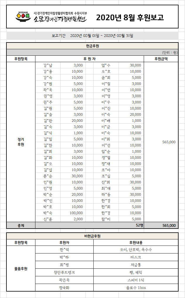 2020년 08월 후원보고서 페이지 정보 작성자 소담센터 댓글 0건 조회 807회 작성일 21-01-11 11:57 본문 후원해주신 모든 분들께 감사드립니다. 앞으로 더 열심히 활동하는 소담센터가 되겠습니다. 목록 이전글2020년 09월 후원보고서 21.01.11 다음글2020년 07월 후원보고서 21.01.11 댓글목록 댓글목록 등록된 댓글이 없습니다.