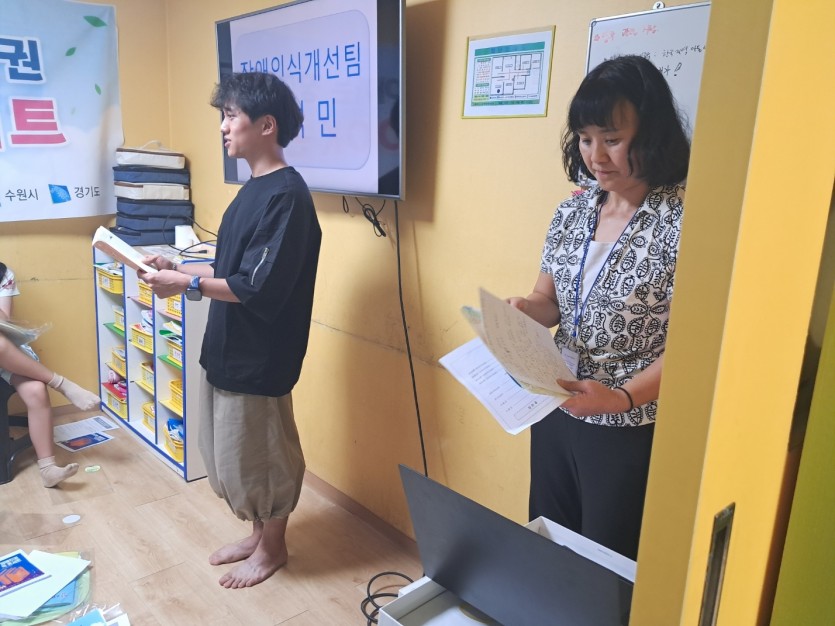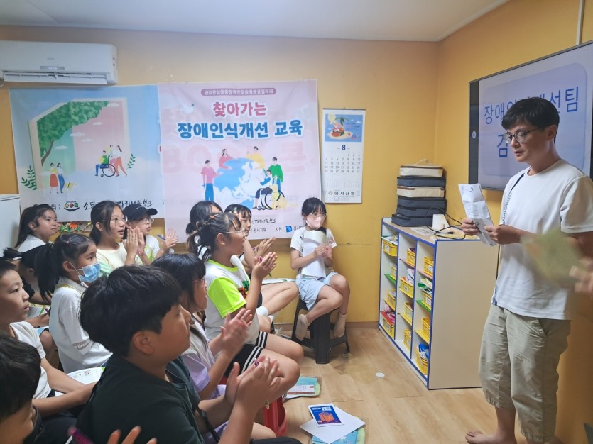 0820 찾아가는 장애인식개선교육 1, 2, 3, 4, 페이지 정보 작성자 소담센터 댓글 4건 조회 3,008회 작성일 24-08-21 11:12 본문 권리중심일자리 장애인식개선강사팀의 첫 강연을 그레이스 지역아동센터 학생들과 함께 했습니다. 목록 이전글0820 찾아가는 장애인권 북 콘서트 24.08.21 다음글지역장애인과 함께 하는 장애친화 체력인증입니다. 24.08.13 댓글목록 댓글목록 김기태님의 댓글 김기태 작성일 24-08-22 20:37 아동센터 가서 장애인식개선 강사교육을 발표하고 나선다^^ 답변 삭제 아동센터 가서 장애인식개선 강사교육을 발표하고 나선다^^ 정석민님의 댓글 정석민 작성일 24-09-03 16:08 장애인식개선교육 강사로 나가서 해보니까 실감나지 않았습니다~ 답변 삭제 장애인식개선교육 강사로 나가서 해보니까 실감나지 않았습니다~ 김기태님의 댓글 김기태 작성일 24-09-24 19:11 장애인식개선 강사로 용기내서 하겠습니다 ^^ 답변 삭제 장애인식개선 강사로 용기내서 하겠습니다 ^^ 조혜진님의 댓글 조혜진 작성일 24-09-24 20:27 어린이.아이들에게 강의?! 하실때 많이 긴장하셨을거 같은데 차분히 강의하시고. 퀴즈 맞힐때 선물해주신것도 아이들이 재밌어하고 아이들이 정답을 맞혔다고하셔서 조금 놀랐지만 신기했습니다. 역시 소담센터 선생님들 ㅎㅎ 멋지십니다 수고하셨습니다!!!!*^^* 답변 삭제 어린이.아이들에게 강의?! 하실때 많이 긴장하셨을거 같은데 차분히 강의하시고. 퀴즈 맞힐때 선물해주신것도 아이들이 재밌어하고 아이들이 정답을 맞혔다고하셔서 조금 놀랐지만 신기했습니다. 역시 소담센터 선생님들 ㅎㅎ 멋지십니다 수고하셨습니다!!!!*^^*
