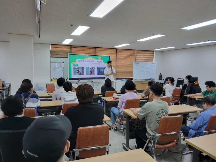 부모님으로부터 독립하거나 홀로서는 것이 두려운 재가 장애인들이 지역사회에 나오기 전 자립의지를 갖기 위해 체험홈이라는 중간 단계를 거쳐 홀로서기의 자신감을 얻을 수 있도록 도와줄 수 있는 좋은 기회가 있음을 좋은 예시로 보여주는 시간이 되었습니다. 강의가 끝나자 체험홈 입주하시겠다는 여성, 남성 대기자가 여러명 생겼습니다.~^^
