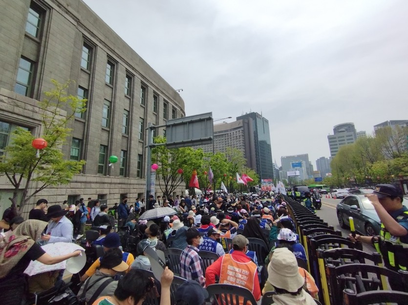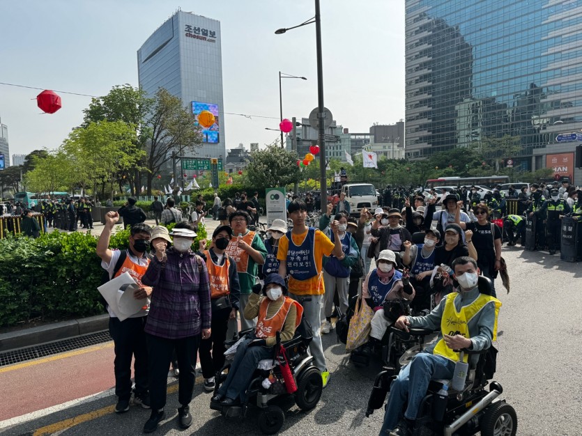 장애인의 날을 하루 앞둔 4월19일 부터 4월20일 1박2일 동안 전국 집중 결의대회가 있었습니다.