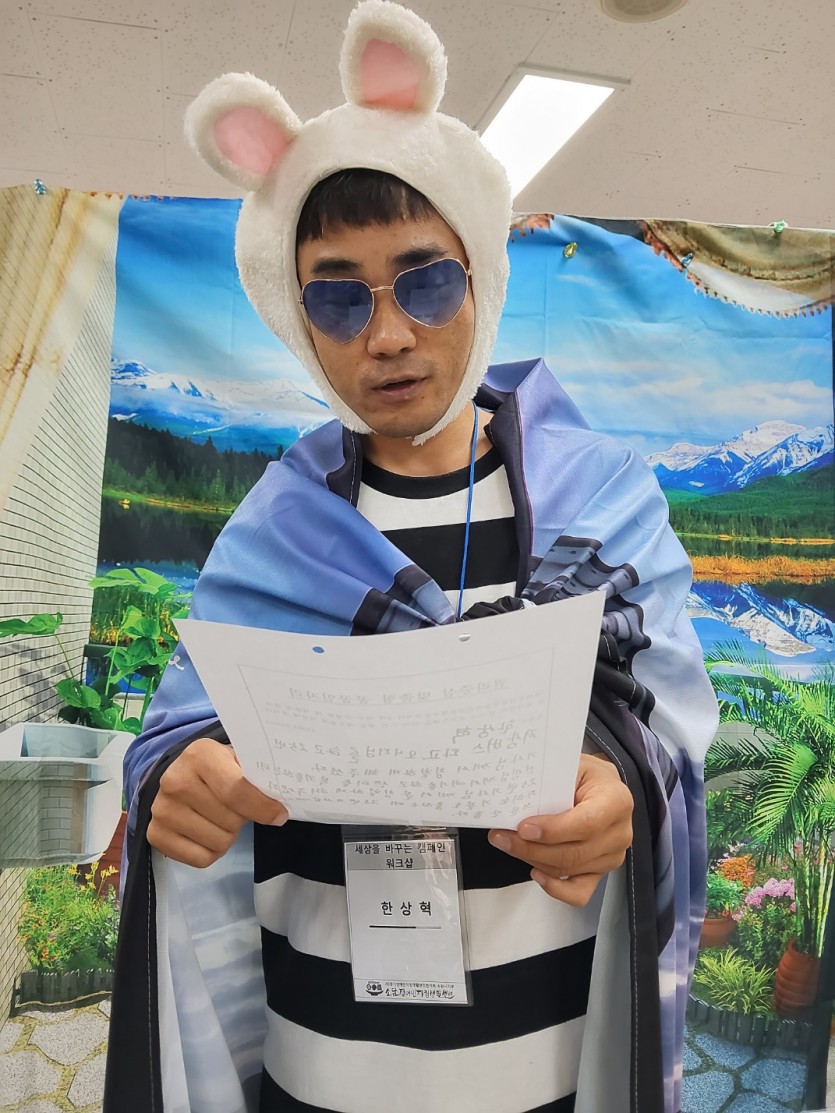 노동자로서 느낀점이나 소감을 변신한 나의 모습으로 발언해보니 평상시에 하고 싶은 표현을 잘 하는 노동자들의 모습. ~