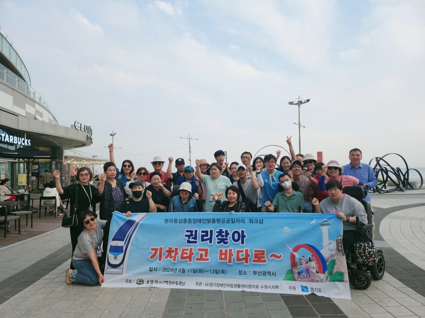 0611 ~ 0613 권리찾는 워크샾 페이지 정보 작성자 소담센터 댓글 1건 조회 1,163회 작성일 24-06-14 17:47 본문 기차타고 바다가 있는 부산으로 내려가 우리의 권리를 찾아 부산해안열차, 요트탑승, 부산시티투어 , 저상버스 모니터링, 리프트 등을 하며 우리도 무장애로 여행할 수 있다는 것을 보여주었다. 목록 이전글0614 장애인주치의 병원 모니터링- 소중한 건강권지키기 24.06.14 다음글0610 우리 함께 목소리를 높여요. 2 24.06.10 댓글목록 댓글목록 정석민님의 댓글 정석민 작성일 24-06-24 16:46 소담 권리중심 일자리 화이팅!!!! 투쟁!!! 답변 삭제 소담 권리중심 일자리 화이팅!!!! 투쟁!!!