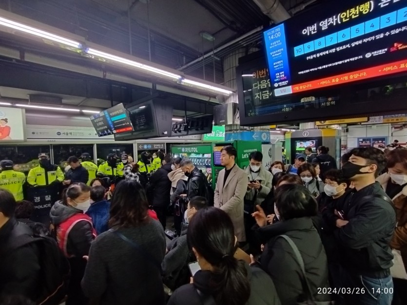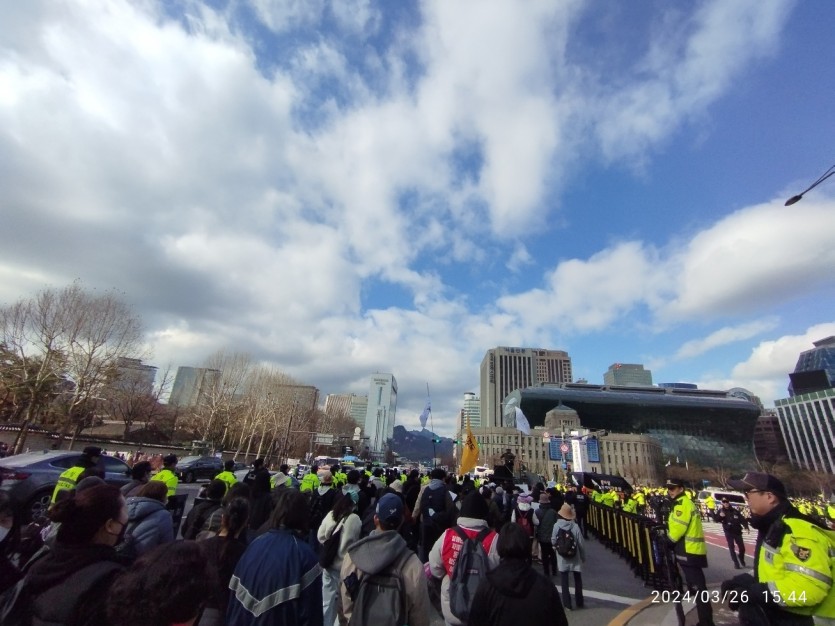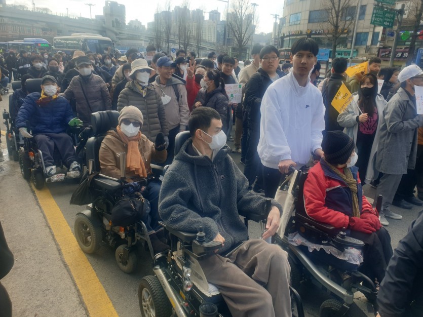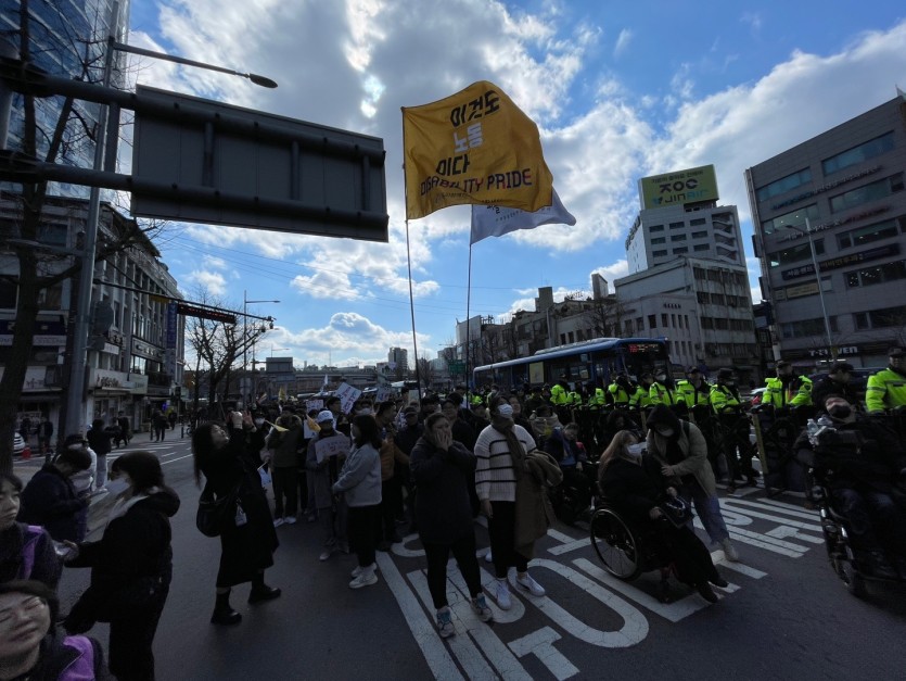 서울역 4번 출구에서 서울시청 까지 장애인도 시민으로 이동하는 시대로 DP 행진 하며