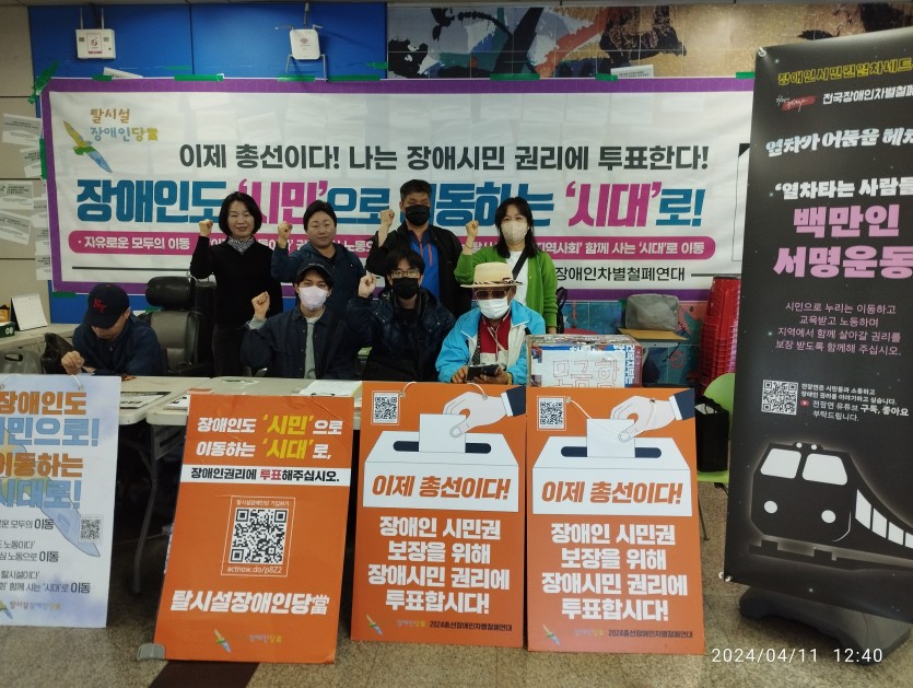 여의도 국회의사당역 농성장 T4철폐 농성 1122일, 지하철 행동 571일 째