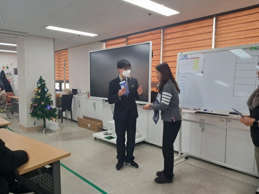 마무리로 센터 대청소해주시고 소담체육대회& 송년회 상금도 받으시고 새신랑처럼 멋진 차림으로 와주신 기태씨 자리를 빛내주셨네요