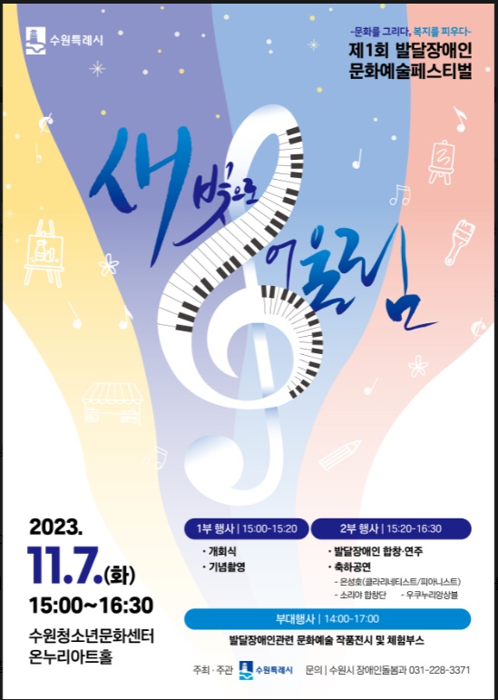 1107 제 1회 발달 장애인 문화예술 페스티벌 -새빛으로 어울림 페이지 정보 작성자 소담센터 댓글 0건 조회 569회 작성일 23-11-11 20:44 본문 목록 이전글1108 2023 행복나무 만들기 23.11.11 다음글1102 이때까지 잘 했어 우리만한 사람 없지 조금만 더 하자 -2023년 활동가 워크샵 23.11.04 댓글목록 댓글목록 등록된 댓글이 없습니다.