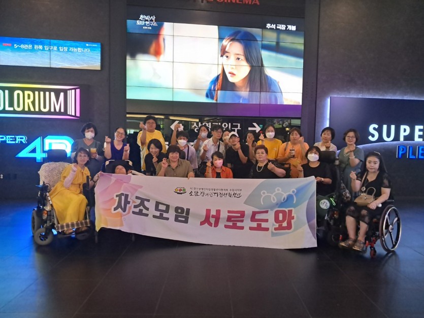 폭염으로 자조모임 서로도와 회원들의 건강이 염려되는 가운데 실내에서 모일 수 있는 장소를 섭외하던 중 회원분들이 영화관람을 추천하셨고