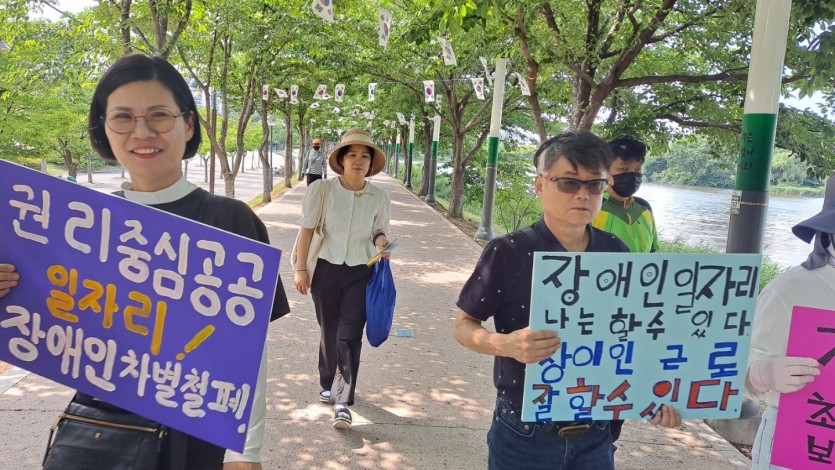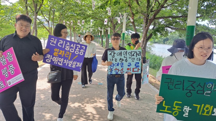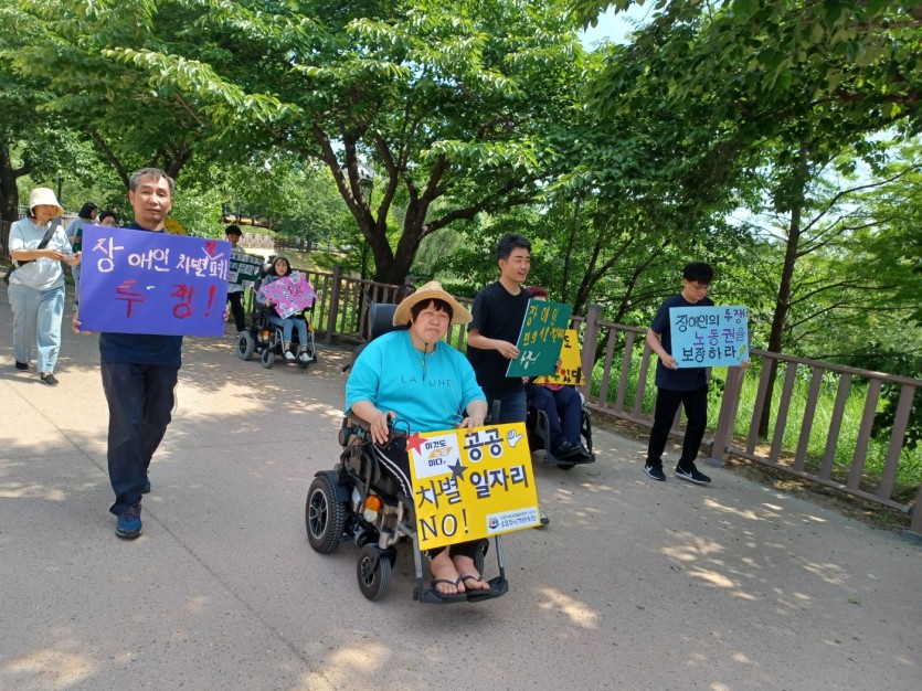 권중 일자리 노동자들과 자조모임 회원들이 다함께 소담센터부터 만석공원 일원까지 우리의 소중한 권리와 권중 일자리를 알리기 위해 행진했어요,